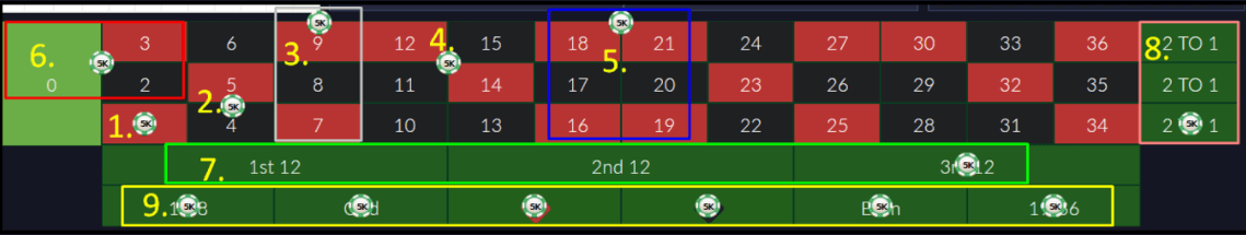 | 1-18 / 19-36 | 1:1 |